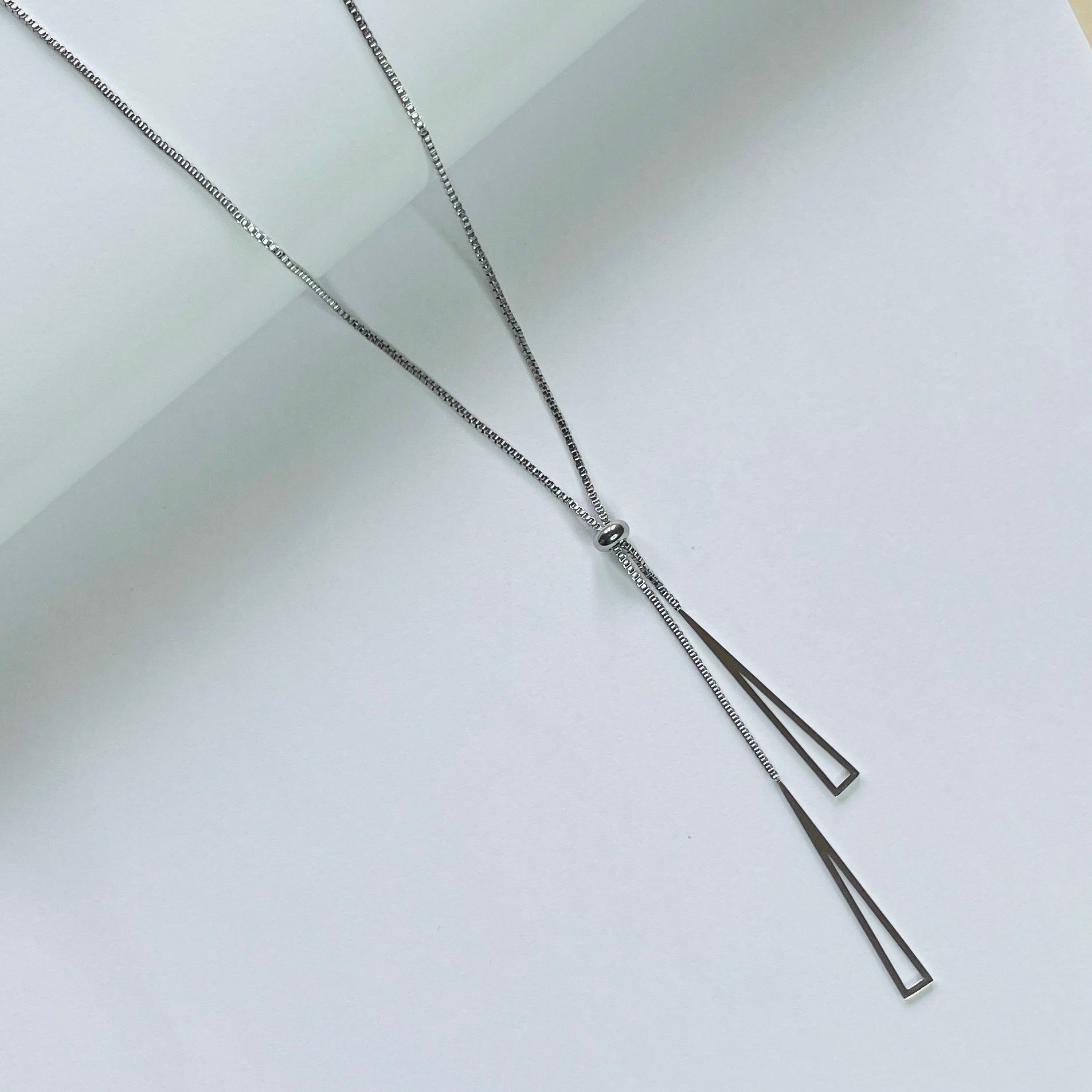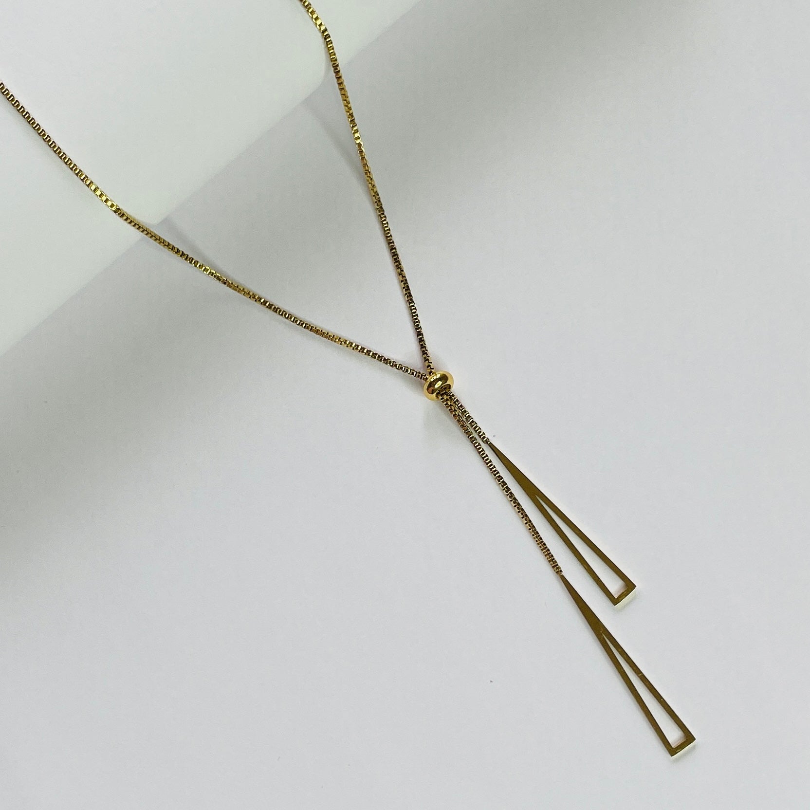 • Shape: Dual long drop pendant with open triangle outlines